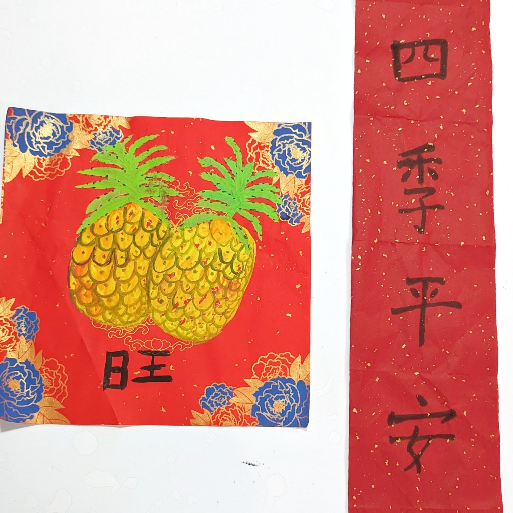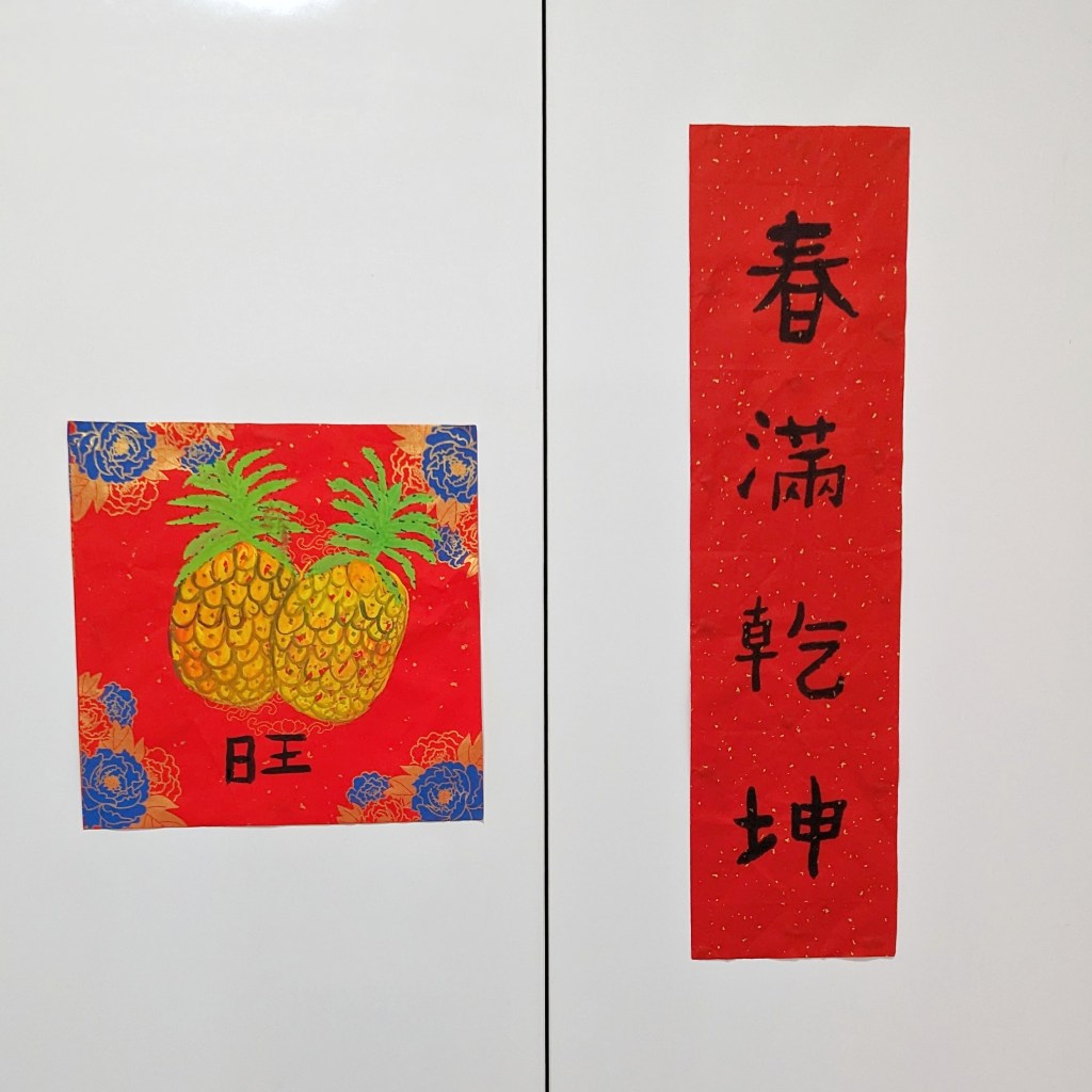 Milo Nugget has been coming back from her art class since three weeks ago with various Chinese calligraphy and decorative pieces, and now these are the only Chinese New Year decorations we have up in our home.