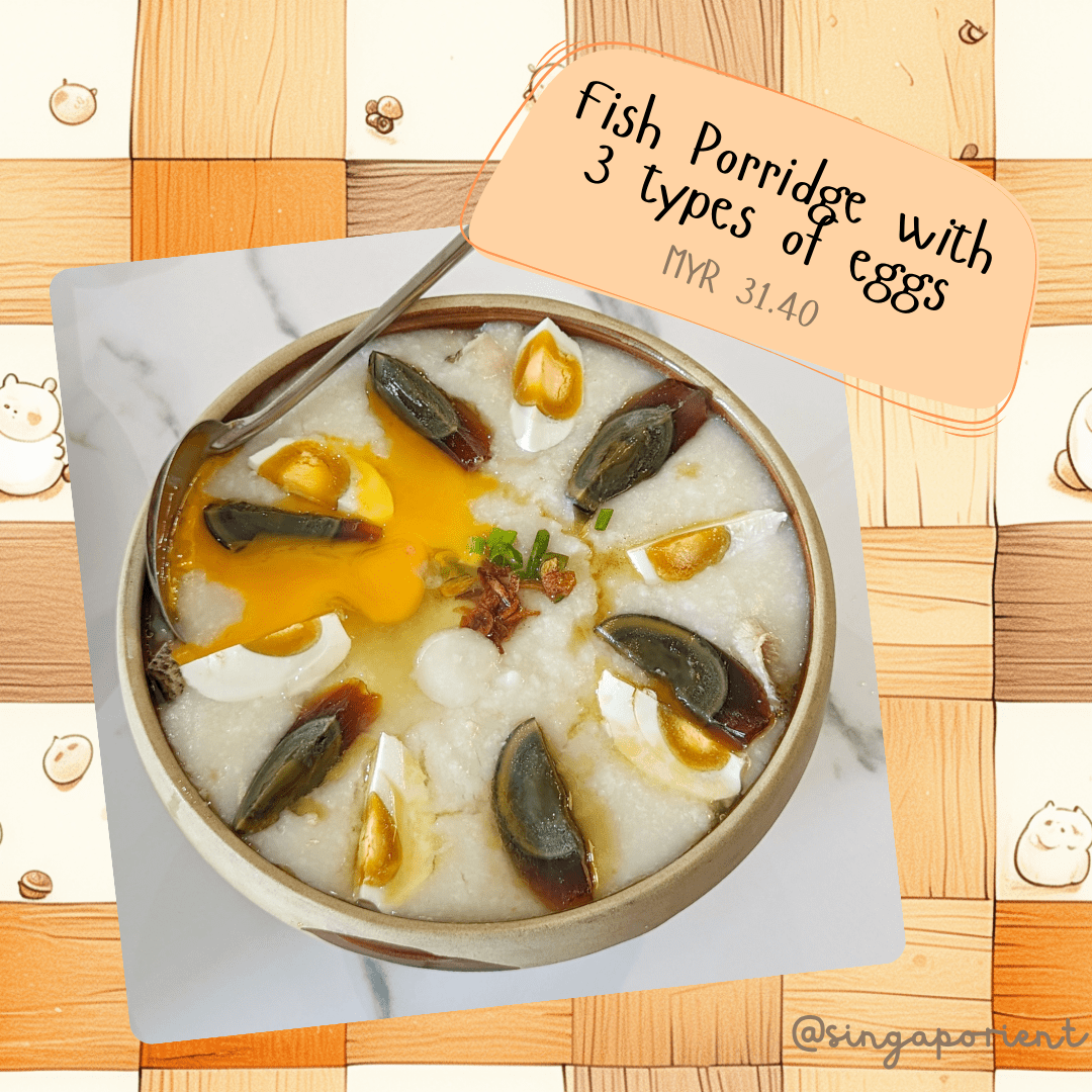 Ms Milk wanted fish porridge with eggs, so we got it with all three types of eggs. It is definitely recommended to top up for the eggs!