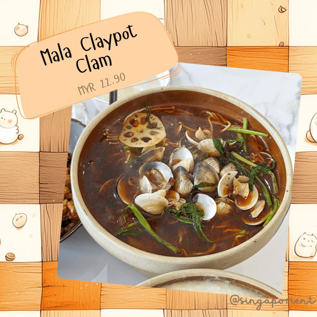 Mr Dino loves anything mala, so he went straight for the mala claypot clams, and we topped up MYR 1 for handmade noodles. He thoroughly enjoyed the juicy clams in mala soup.