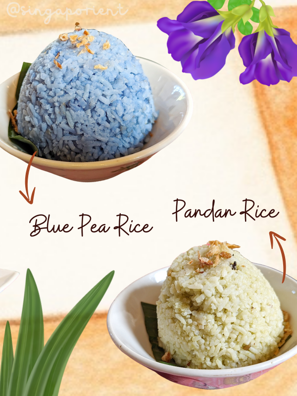 You can choose from two different types of rice – the blue pea flower rice or the pandan lemongrass rice. I preferred the blue pea flower rice, which is milder in flavour, because the dishes are already very heavy on taste.