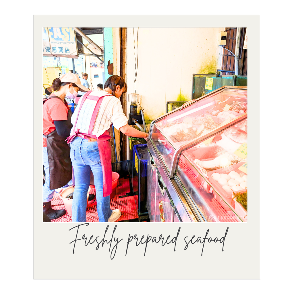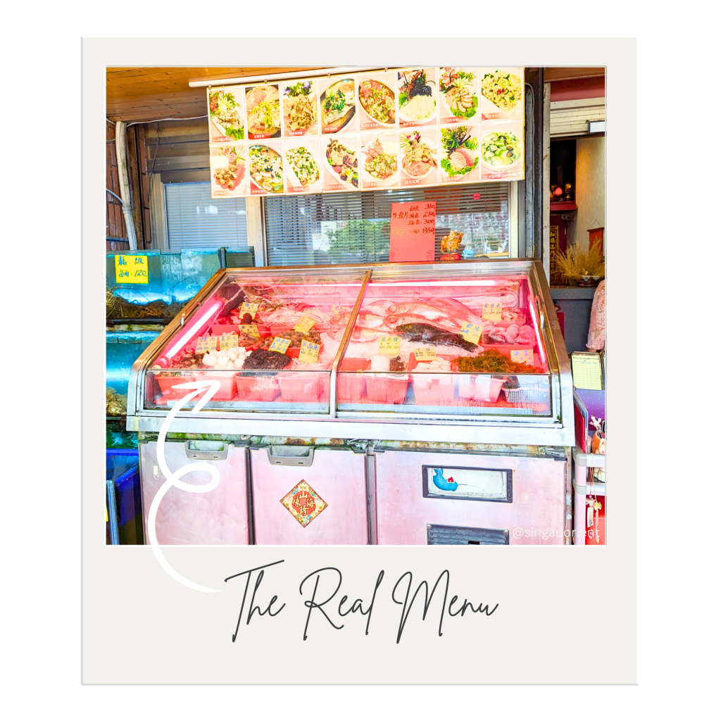 When you are ready to order, the proprietress will bring you to the front for the shop, gesture at the fresh seafood on display for you to take your pick, and then she will note down your preference on how you want it cooked on a pink slip of paper.
