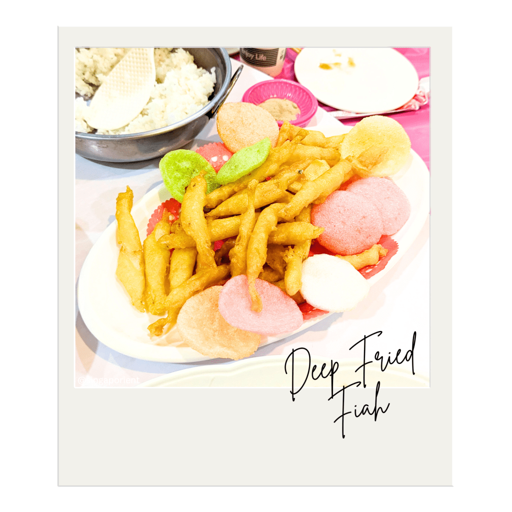 You might notice a metal bowl of rice on the table – unlike what we see in most restaurants in Singapore, they don’t serve/charge for rice by the bowl here. They serve you hot steamed rice in a large metal bowl, which is passed around for everyone to scoop as much or as little as they want. I think it’s a great way to reduce wastage and ensures that everyone is able to eat their fill!