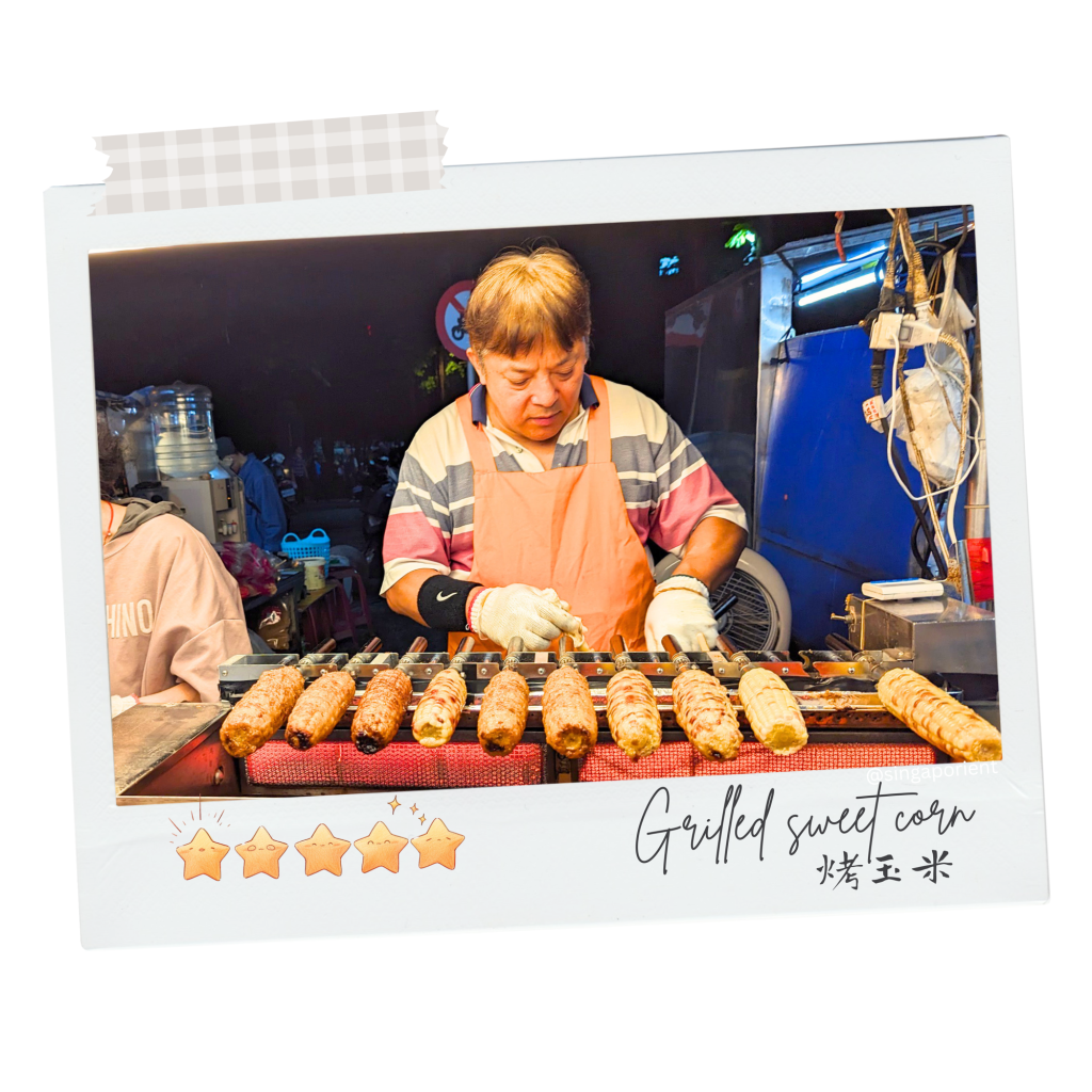 One of our favourite night market food is definitely their grilled corn. We were immediately attracted by the 沙茶烤玉米 (shacha sauce grilled corn) and got one stick each for the children.