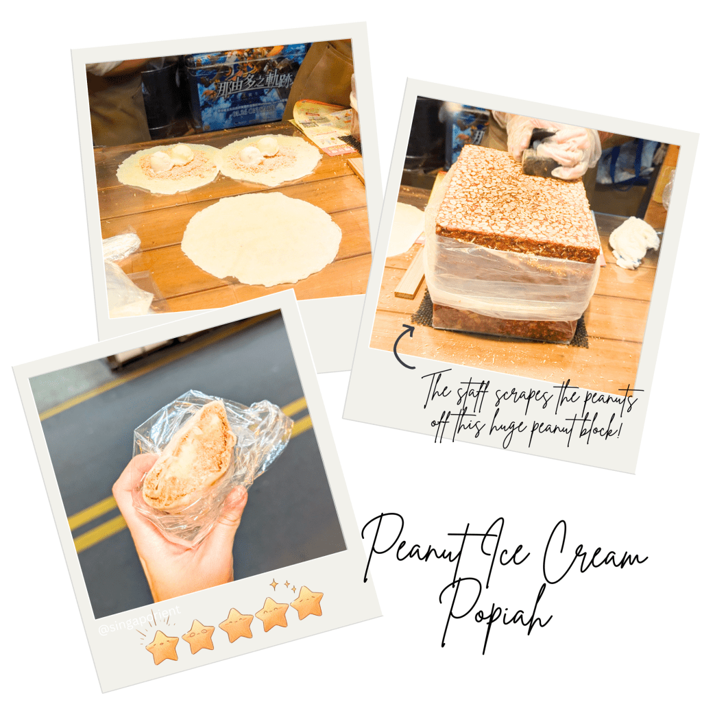 It was mesmerising to watch the large block of glazed peanut being shaved into crumbly little pieces and then sprinkled generously onto the popiah skin, before being topped with yam flavoured ice cream. This was so good and so worth searching for.