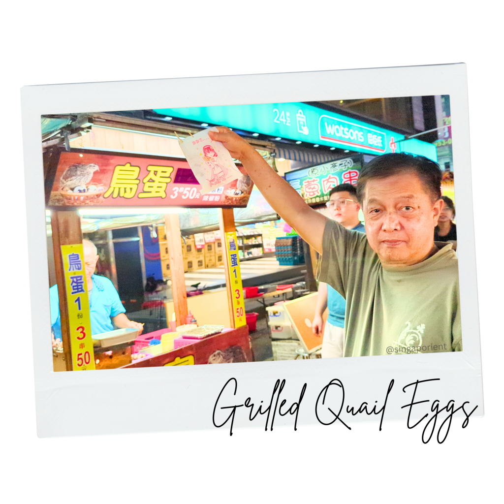 This is my dad being very pleased with his grilled quail eggs. The children love quail eggs so we must have gotten sticks and sticks of this. I find it so cute that they call it 鳥蛋, or literally, bird egg.