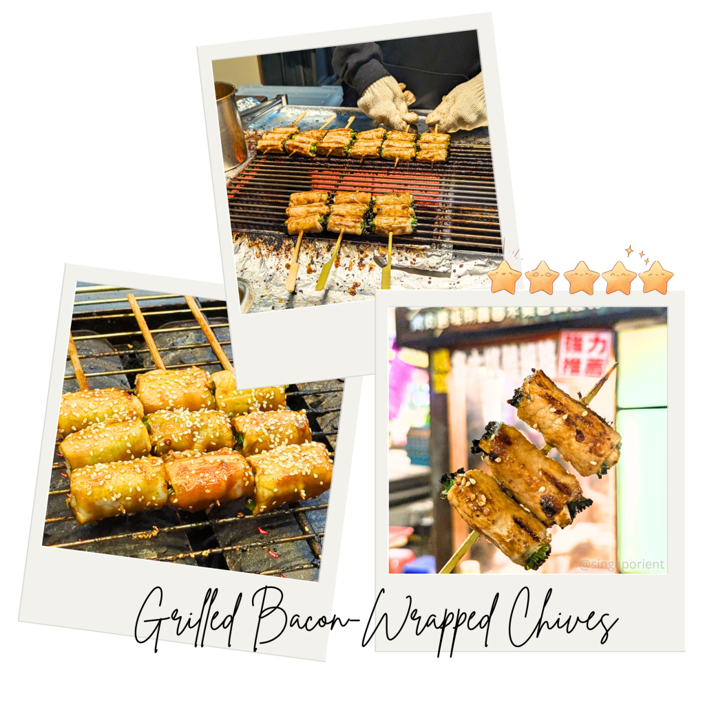This area seems to be famous for their chives so you’ll find multiple stalls selling skewered bacon-wrapped chives. We tried from three different stalls and I forgot to take pictures of the stall names but there was a significant difference between the ones from a popular stall and the ones from a less popular one. I’ve learnt in Taiwan to always join the long queues, and that it’s almost always worth it.